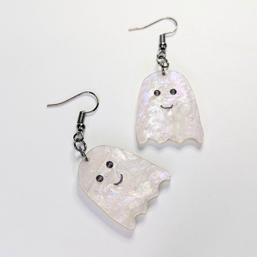 Marbled Glittery Acrylic Ghost Earrings