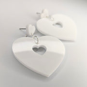 This classic double heart trapeze design has been given a retro feel with a simple white acrylic, they are lightweight and so stylish, perfect for any occasion.