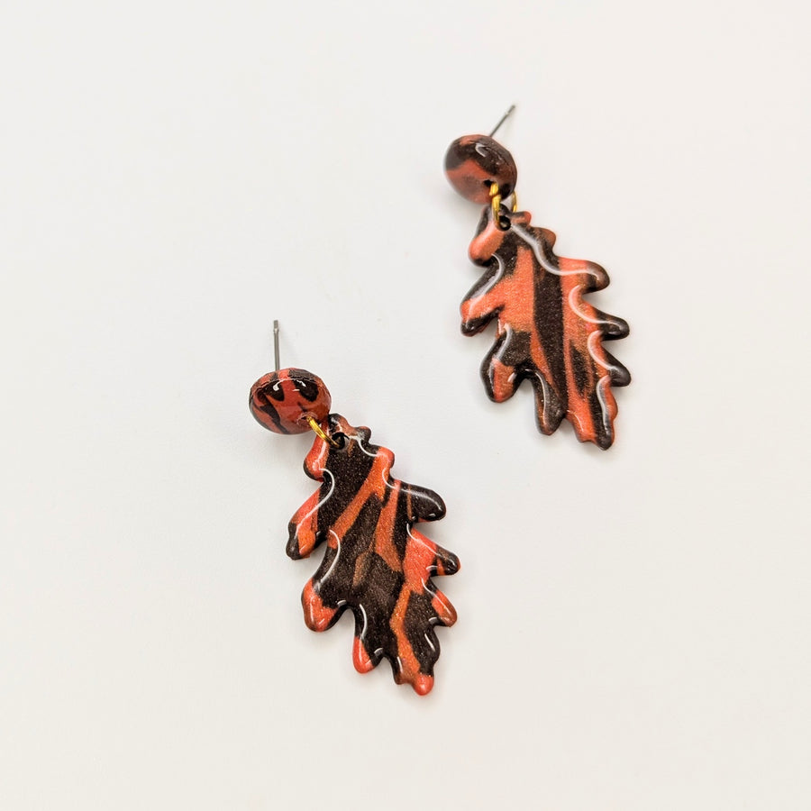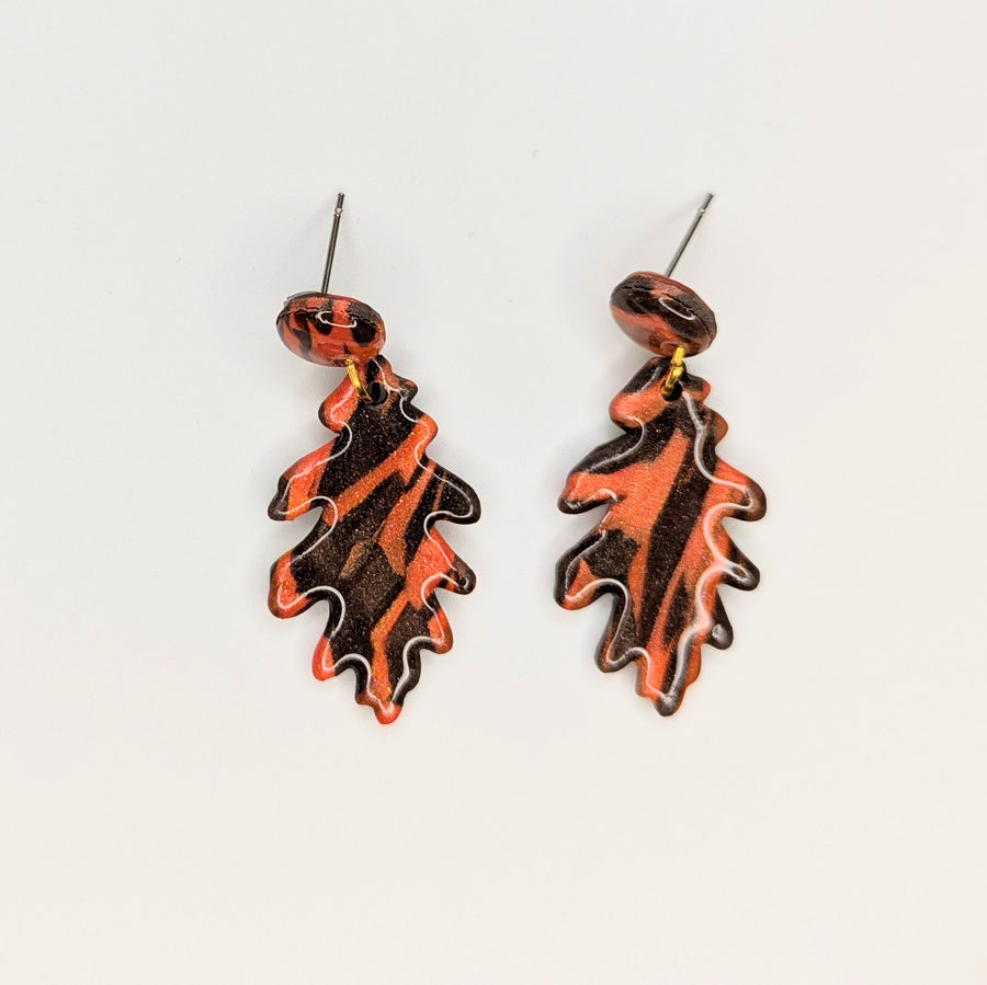 Marbled Autumnal Leaf Trapeze Earrings
