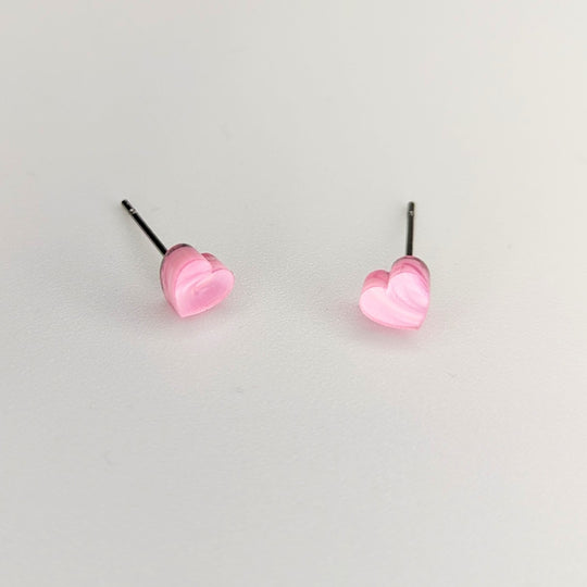 Marbled Pink Acrylic Cute Heart Stud Earrings