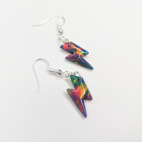 Pride Rainbow Marbled Cute Lightning Bolt Earrings, LGBTQ+ Queer Jewellery