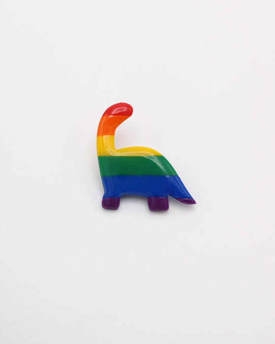 Rainbow Dino Badge LGBTQ+ Polymer Clay Dinosaur Badge