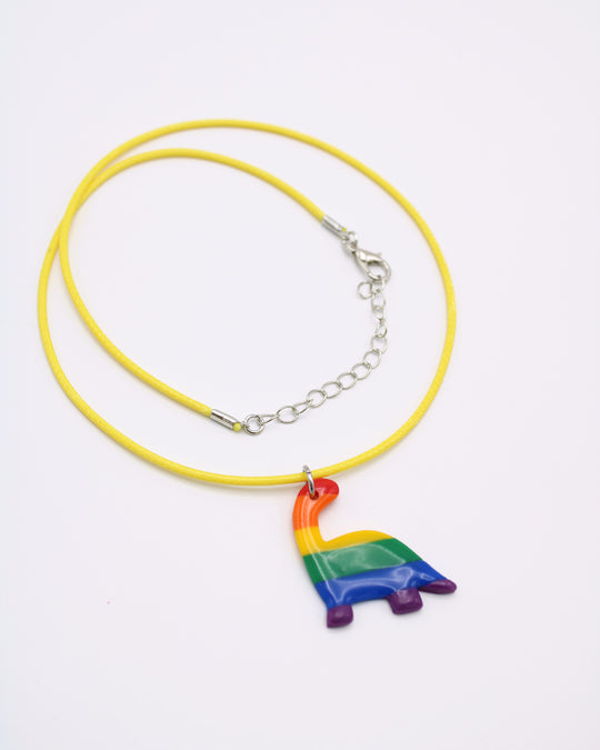 LGBTQ+ Pride Rainbow Polymer Clay Dinosaur Necklace