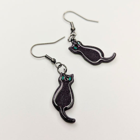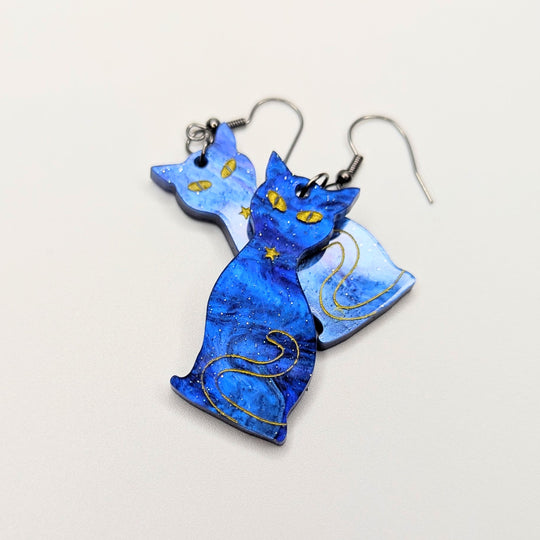 Spacey Blue & Gold Glittery Acrylic Cat Earrings