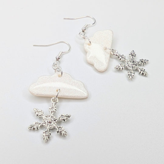Sparkly White Cloud & Snowflake Charm Trapeze Earrings