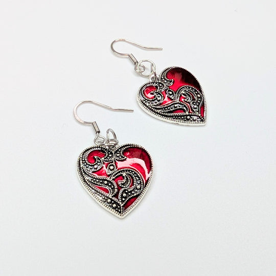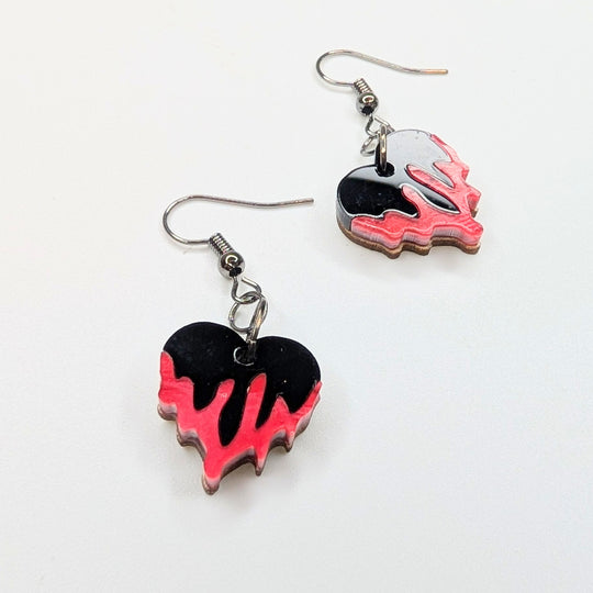 Black & Red Acrylic Bleeding Heart Drop Earrings