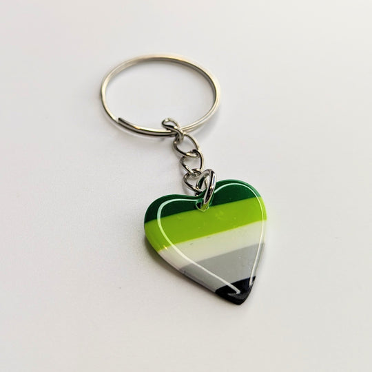 Aromantic Heart Flag Handmade Keyring LGBTQ+ Jewellery Polymer Clay