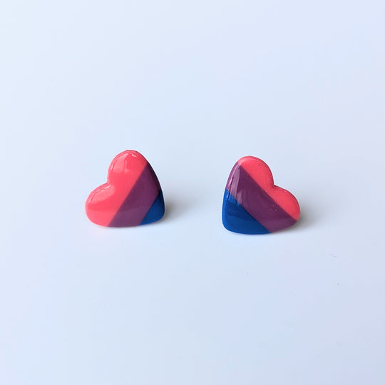 LGBTQ+ Bisexual Pride Polymer Clay Heart Studs