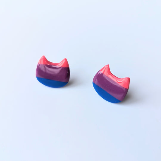 LGBTQ+ Bisexual Pride Polymer Clay Cat Face Studs