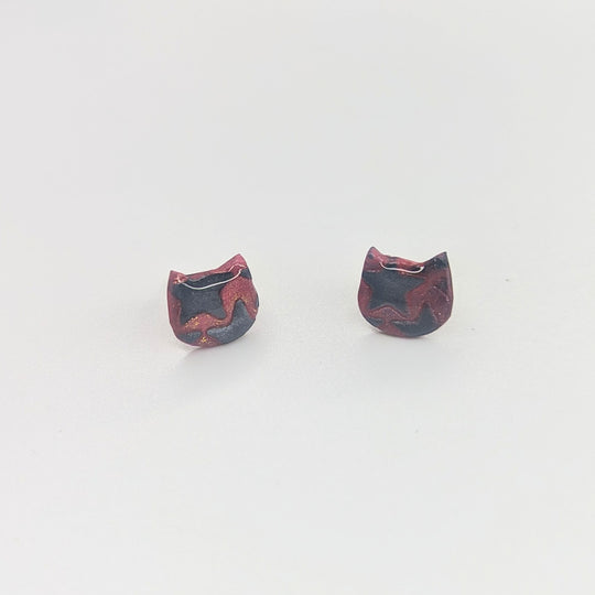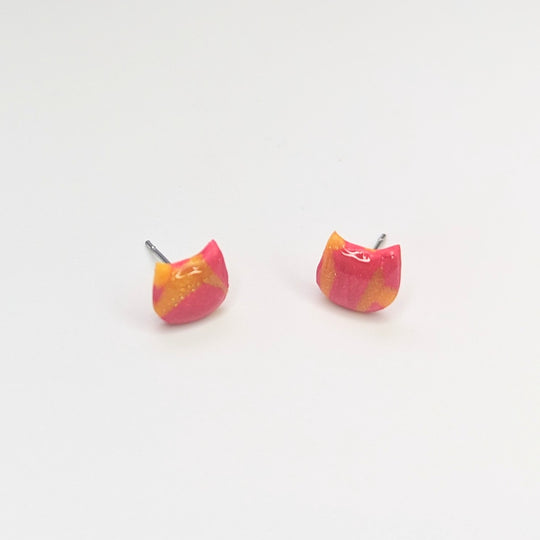Sparkly Marbled Red & Yellow Cute Cat Face Stud Earrings