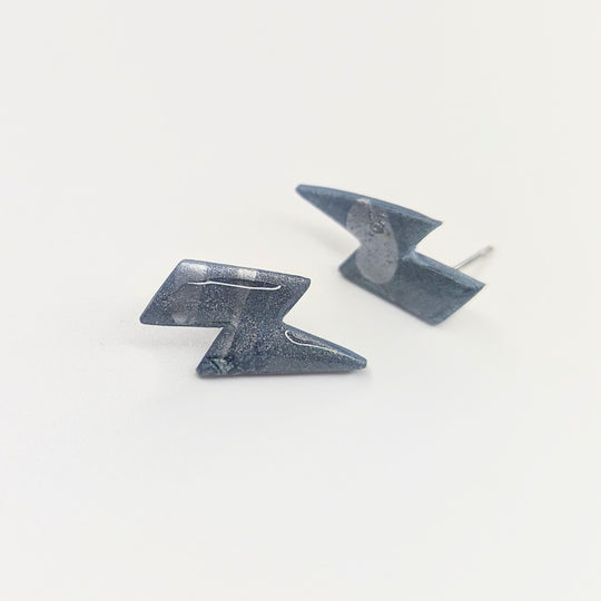 Metallic Silver Painted Lightning Bolt Stud Earrings
