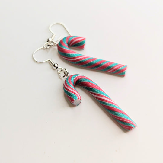 Sparkly Rainbow Candy Cane Bites Cute Christmas Drop Earrings