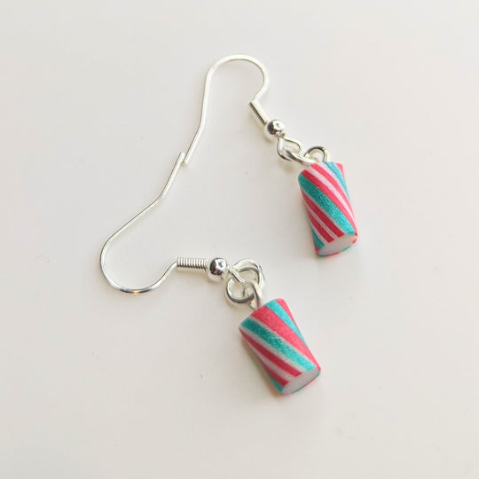 Red & Green Striped Candy Cane Bites Cute Christmas Drop Earrings