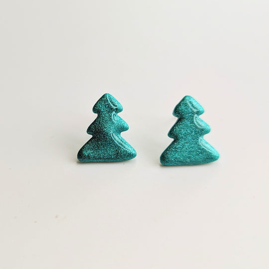 Sparkly Green Cute Christmas Tree Stud Earrings