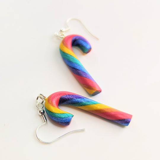 Sparkly Rainbow Candy Cane Drop Earrings LGBTQ Jewellery