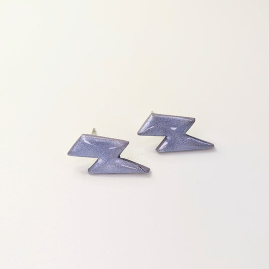 Sparkly Silvery Blue Lightning Bolt Stud Earrings