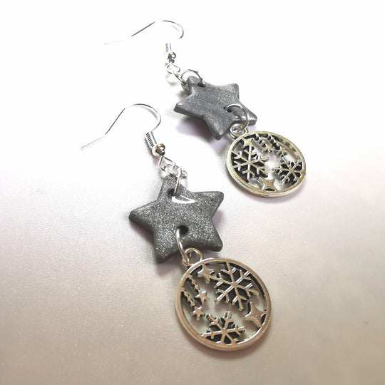 Sparkly Silver Star Topped Christmas Bauble Earrings