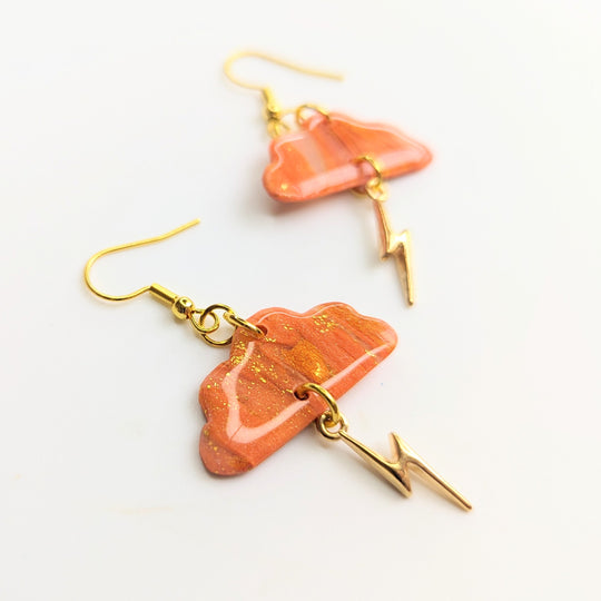 Marbled Orange & Translucent Cloud with Lightning Bolt Charm Trapeze Earrings