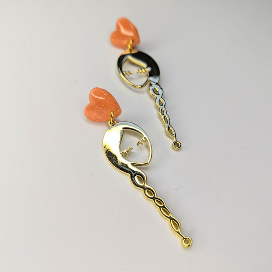 Gold & Rose Heart Topped Plaited Hair Girl Face Trapeze Earrings