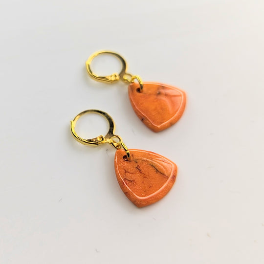 Marbled Orange Teardrop Huggie Hoop Earrings