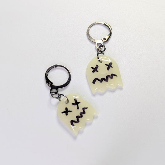 Glow in the Dark Cross Eyed Ghost Huggie Hoop Earrings