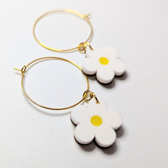 White & Yellow Daisy Acrylic Hoop Earrings