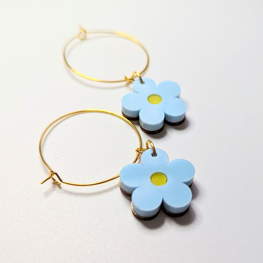 Baby Blue Daisy Acrylic Hoop Earrings