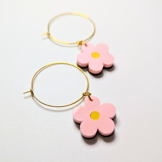 Baby Pink Daisy Acrylic Hoop Earrings