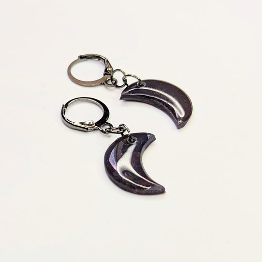 Rich Dark Purple Moon Huggie Hoop Earrings, Polymer Clay Jewellery