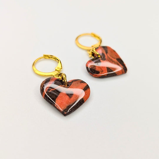 Marbled Autumnal Heart Huggie Hoop Earrings