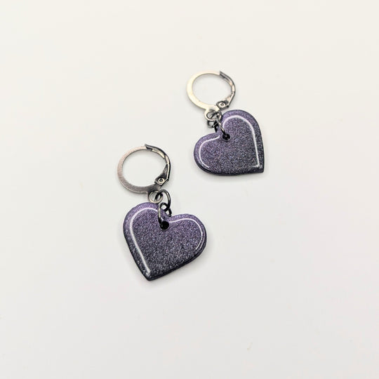 Sparkly Black & Purple Ombre Heart Huggie Hoop Earrings