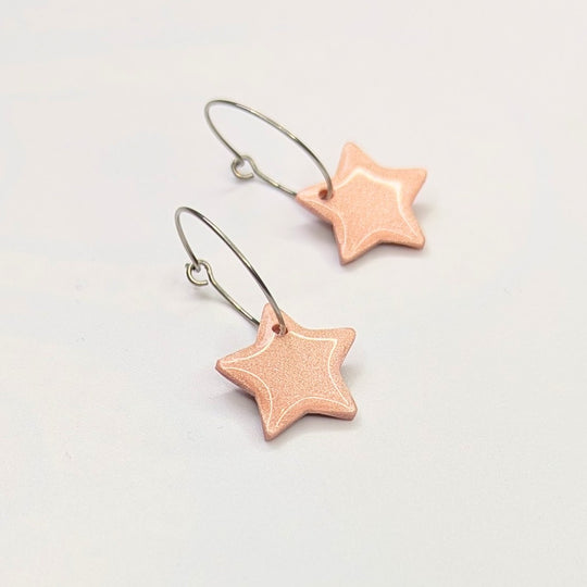 Sparkly Dusky Pink Star Hoop Earrings, Polymer Clay Jewellery