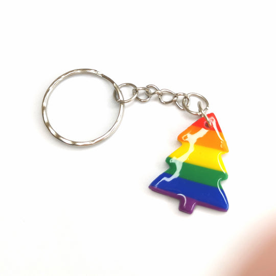Rainbow Christmas Tree Keyring Keychain LGBTQ Jewellery