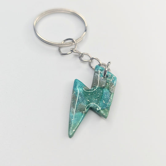 Emerald Green & Silver Lightning Bolt Keyring