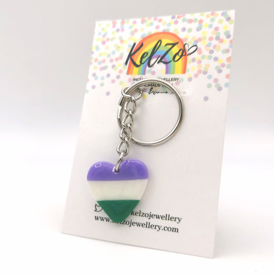 Non Binary Heart Keyring LGBTQ+ Jewellery Enby Key Chain Handmade Polymer Clay