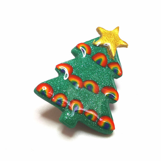 Rainbow Christmas Tree Badge Brooch