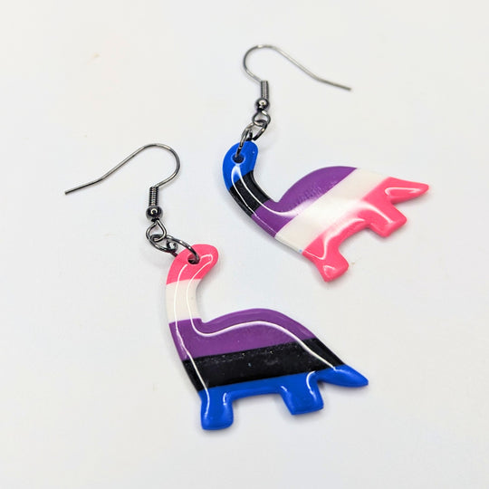 Gender Fluid Dino Drop Earrings LGBTQ+ Jewellery