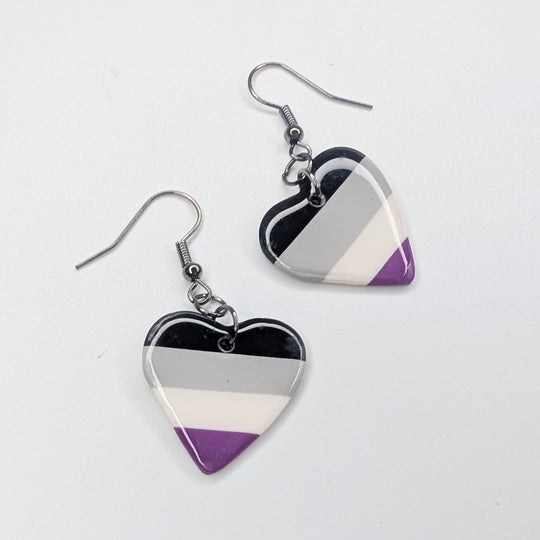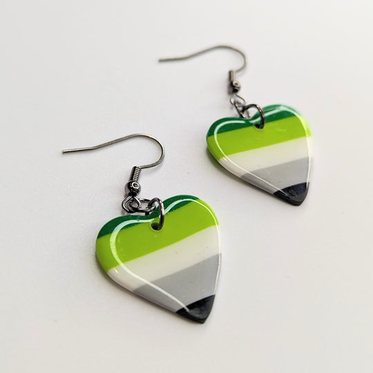 Aromantic Heart Flag Earrings Handmade LGBTQ+ Jewellery Polymer Clay