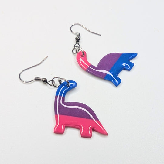 Bisexual Dinosaur Drop Earrings, Queer Earrings