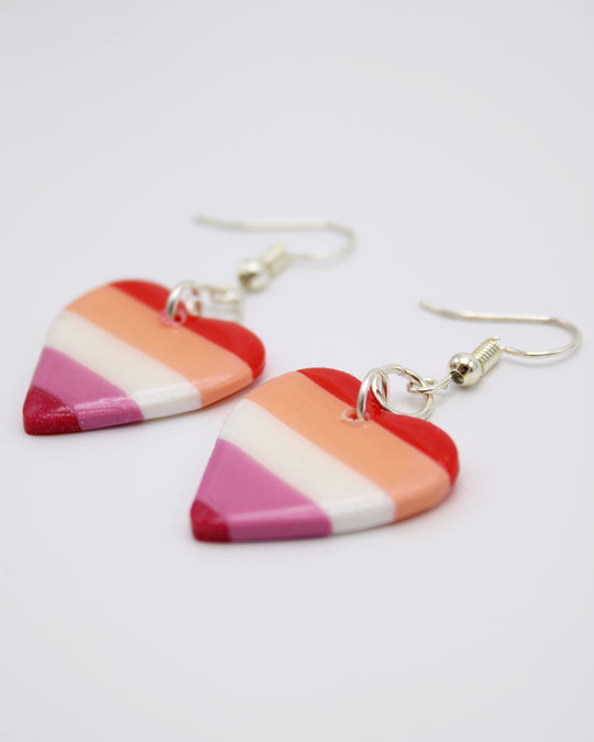 Lesbian Flag LGBTQ+ Pride Heart Polymer Clay Earrings
