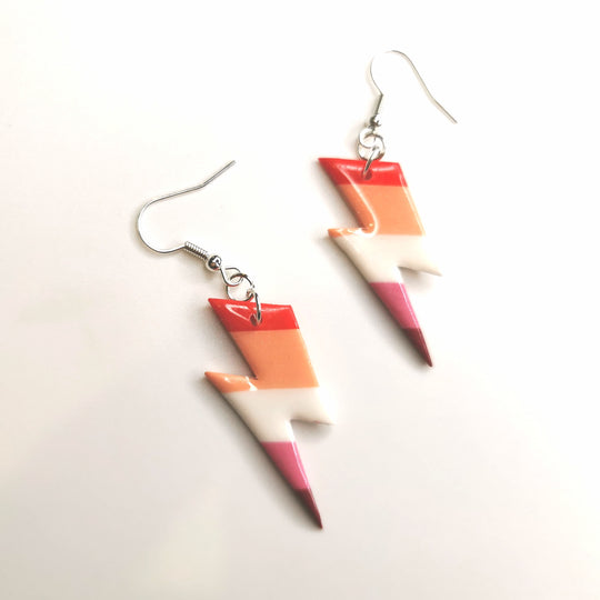 Pride Lesbian Lightning Bolt Drop Polymer Clay LGBTQ+ Jewellery Earrings