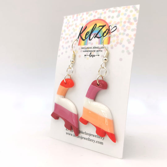 Lesbian Dino Earrings Drops Dino LGBTQ+ Pride Jewellery Handmade Polymer Clay Earrings