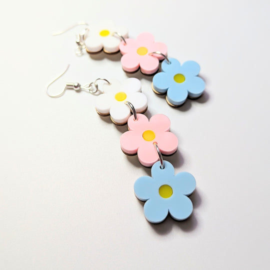 Triple Pastel Daisy Acrylic Trapeze Earrings