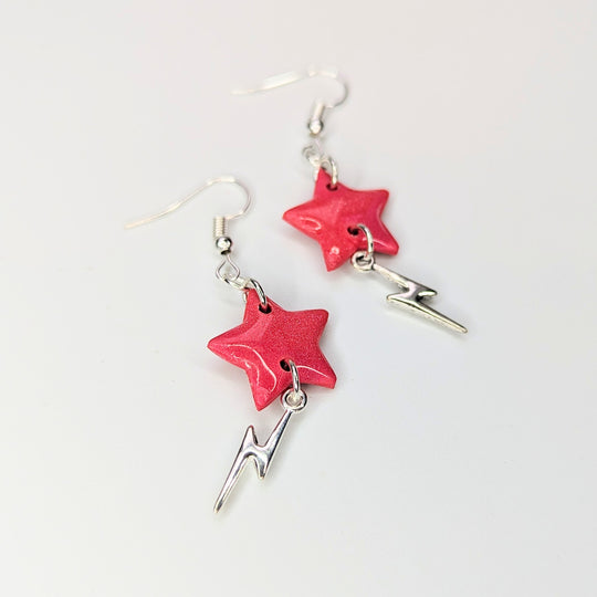 Sparkly Red Star with Lightning Bolt Charm Trapeze Earrings