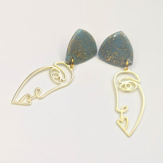 Teal & Gold Flake Glow in the Dark Topped Golden Face Earrings