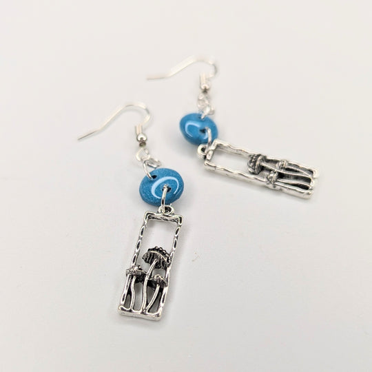 Sparkly Blue Circle Topped Mushroom Charm Drop Earrings