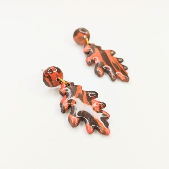 Marbled Neon Heart Topped Filigree Leaf Trapeze Earrings