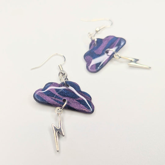 Shiny Marbled Blue & Purple Cloud with Lightning Bolt Charm Trapeze Earrings